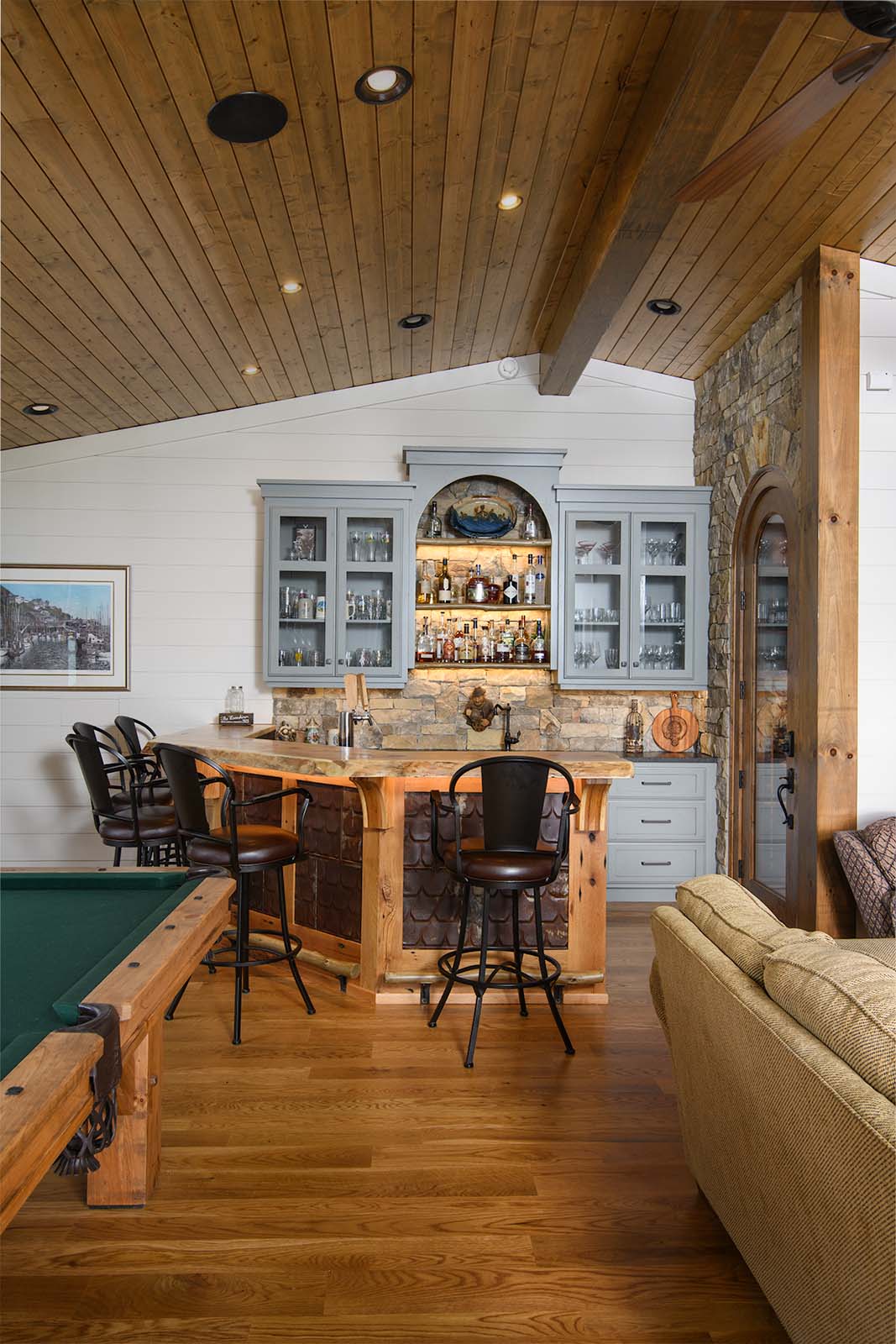 Truman Custom Builders delivered a high-quality family gathering spot for a family on Lake Keowee. This renovation, with its picturesque view of the lake, featured a bar and wine room, making it the ultimate spot for family gatherings on game day. Friends and family can all enjoy the game while hanging out by the fire or playing pool, all with a stunning view of Lake Keowee.