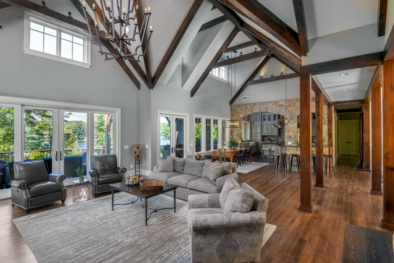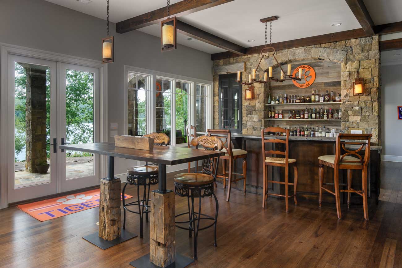 This custom home on Lake Keowee is extraordinary from top to bottom, inside and out. From the moment you step inside, you’ll see the open concept, the post-and-beam construction, and the custom bars and wine cellars.